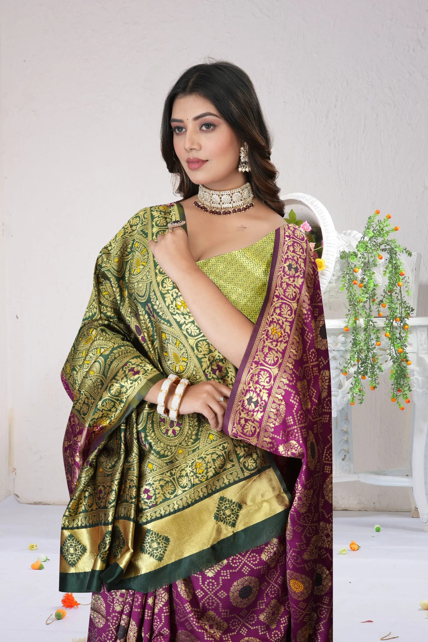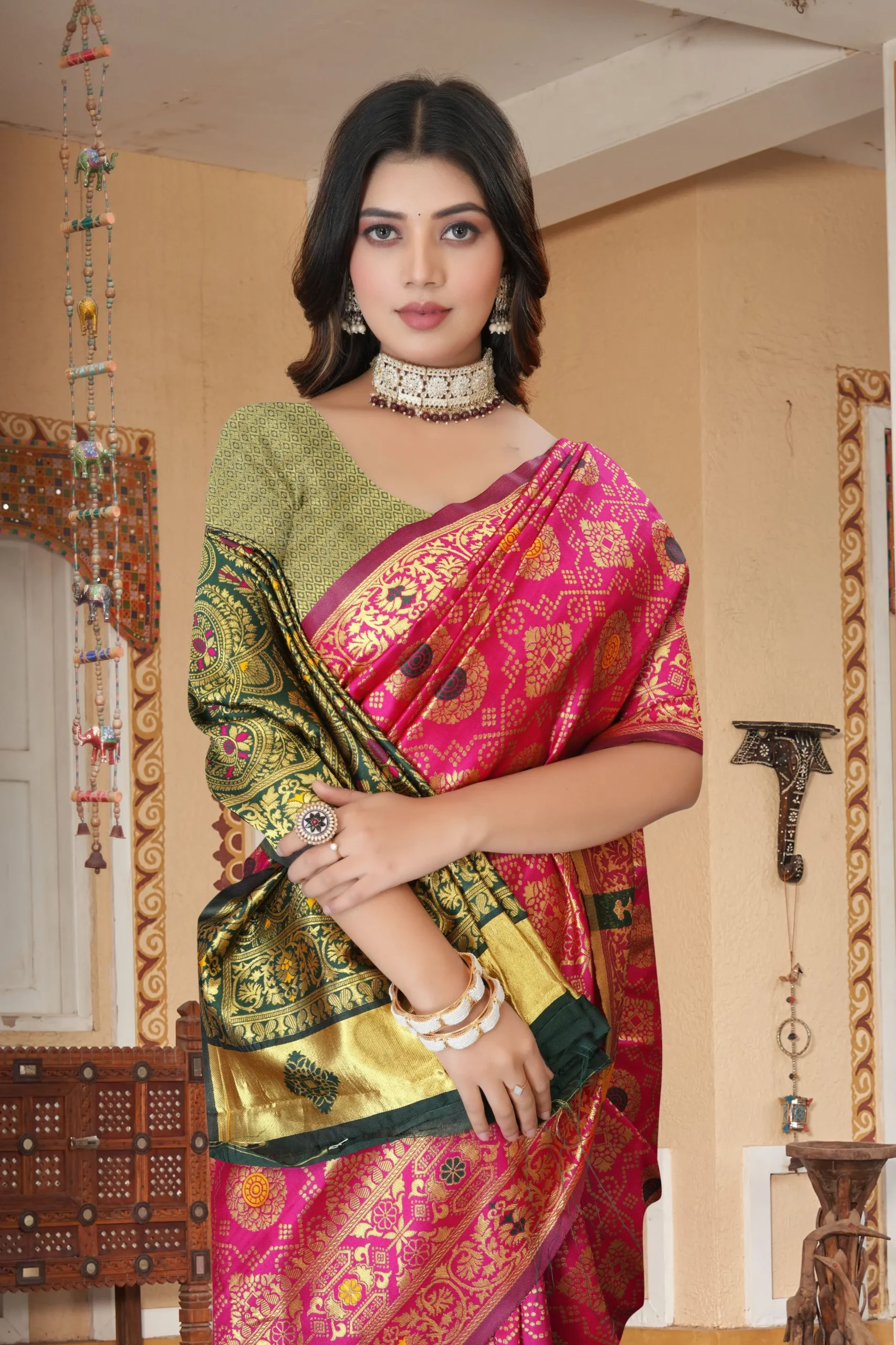 Elevate your ethnic wardrobe with the Maharanga Silk Saree with Gold Zari, a masterpiece crafted for timeless beauty and elegance.